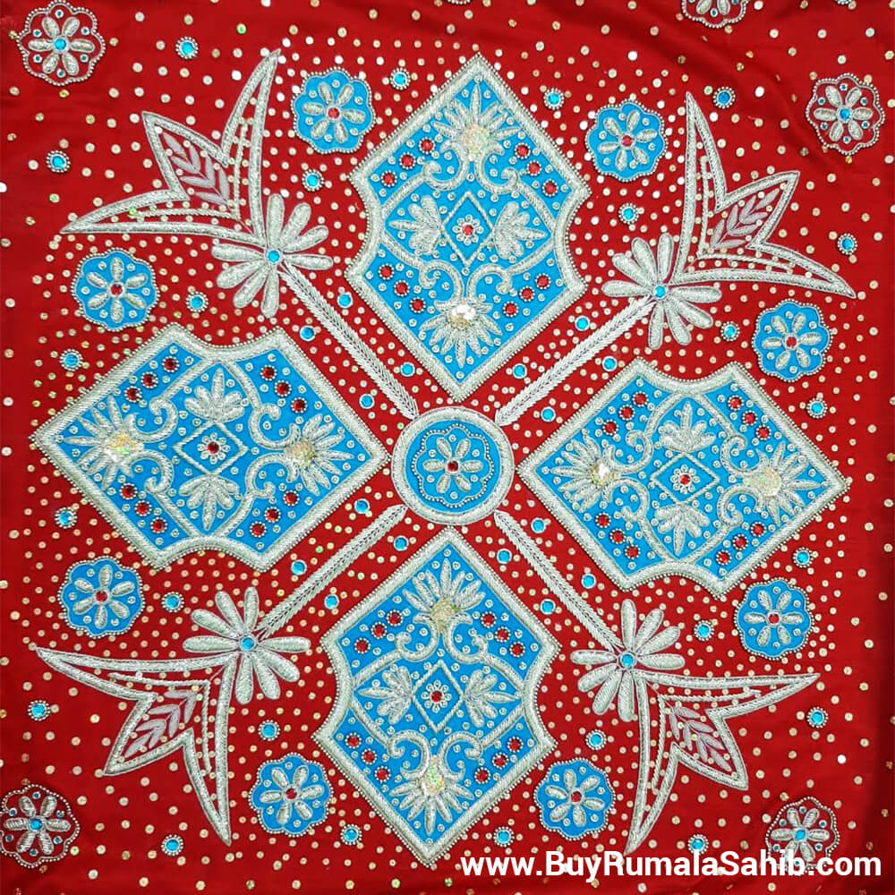 Buy Red and Sky Blue Rumala Sahib (Hand Embroidery)