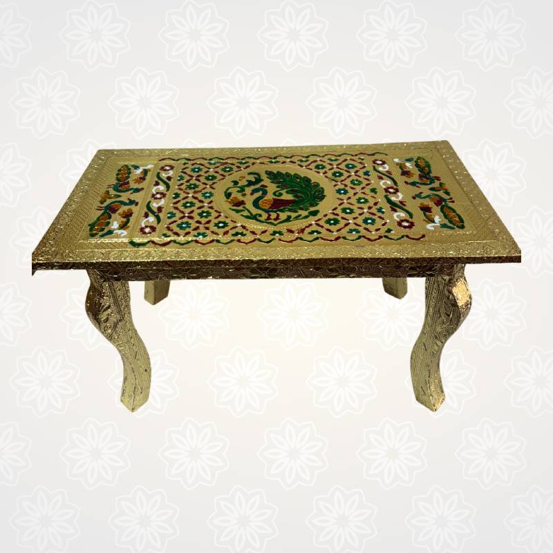 ਸੁਨਹਿਰੀ ਮੋਰ ਮੇਜ਼ ਤੁਹਾਡੇ ਪਵਿੱਤਰ ਭੋਗਾਂ ਲਈ ਇੱਕ ਆਧਿਆਤਮਿਕ ਅਤੇ ਸੁੰਦਰ ਅਦਾਨ-ਪ੍ਰਦਾਨ ਹੈ। ਸੋਨੇ ਵਰਗੀ ਰੰਗਤ ਨਾਲ ਤਿਆਰ ਕੀਤੀ ਗਈ ਅਤੇ ਸੁਖਮਨੀ ਮੋਰ ਦੇ ਕੰਮ ਨਾਲ ਸਜਾਈ ਗਈ, ਇਹ ਮੇਜ਼ ਆਤਮਿਕ ਖੁਸ਼ਹਾਲੀ ਅਤੇ ਭਗਤੀ ਦਾ ਪ੍ਰਤੀਕ ਹੈ। ਚਵਰ ਸਾਹਿਬ ਅਤੇ ਪ੍ਰਸਾਦ ਲਈ ਸ੍ਰੇਸ਼ਠ ਤਰੀਕੇ ਨਾਲ ਡਿਜ਼ਾਈਨ ਕੀਤੀ ਗਈ ਹੈ।